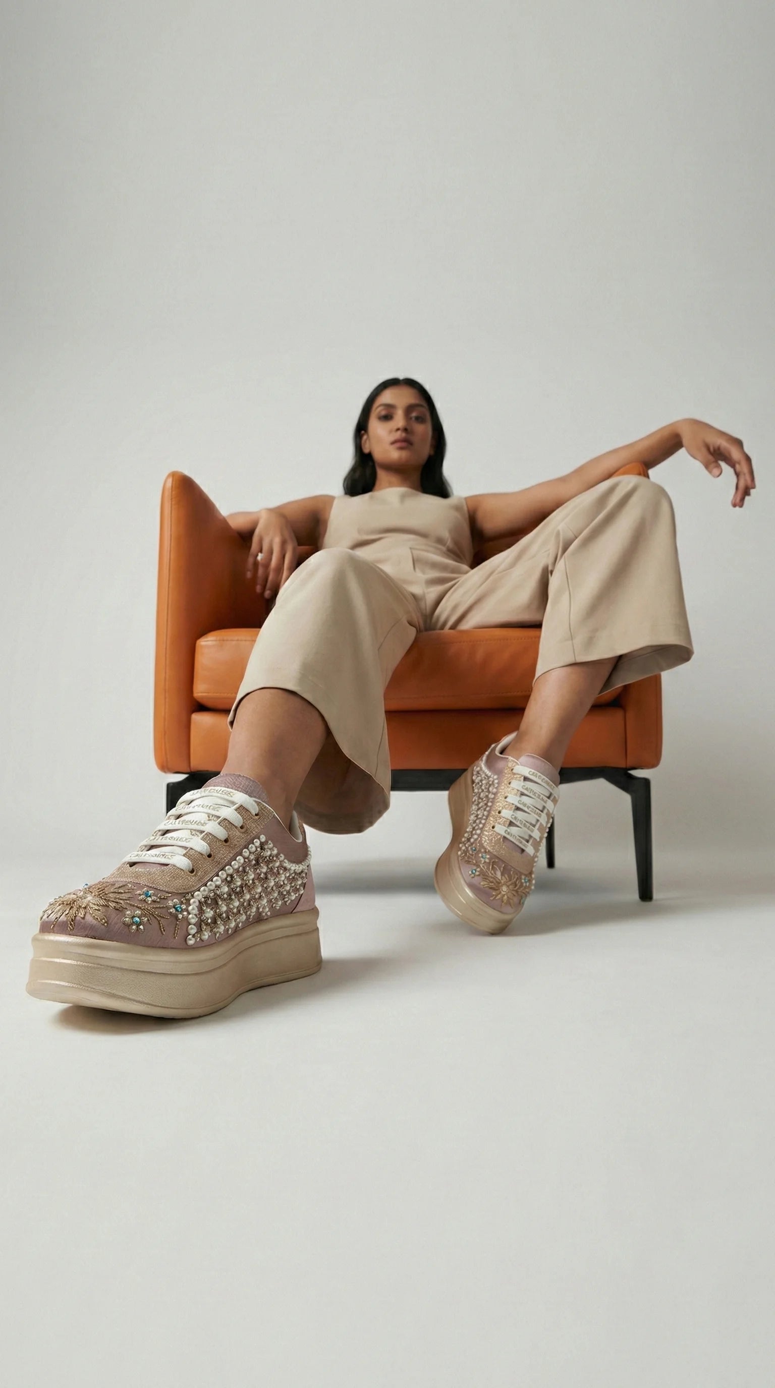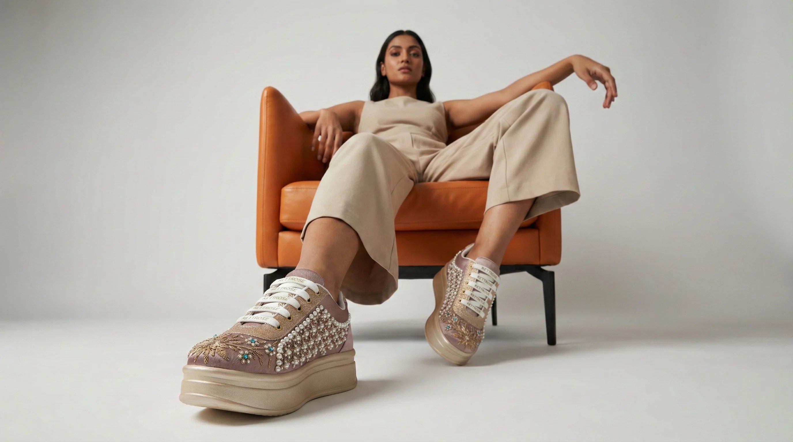 The Rose Blush Peach Luxury Embellished Casual Sneaker