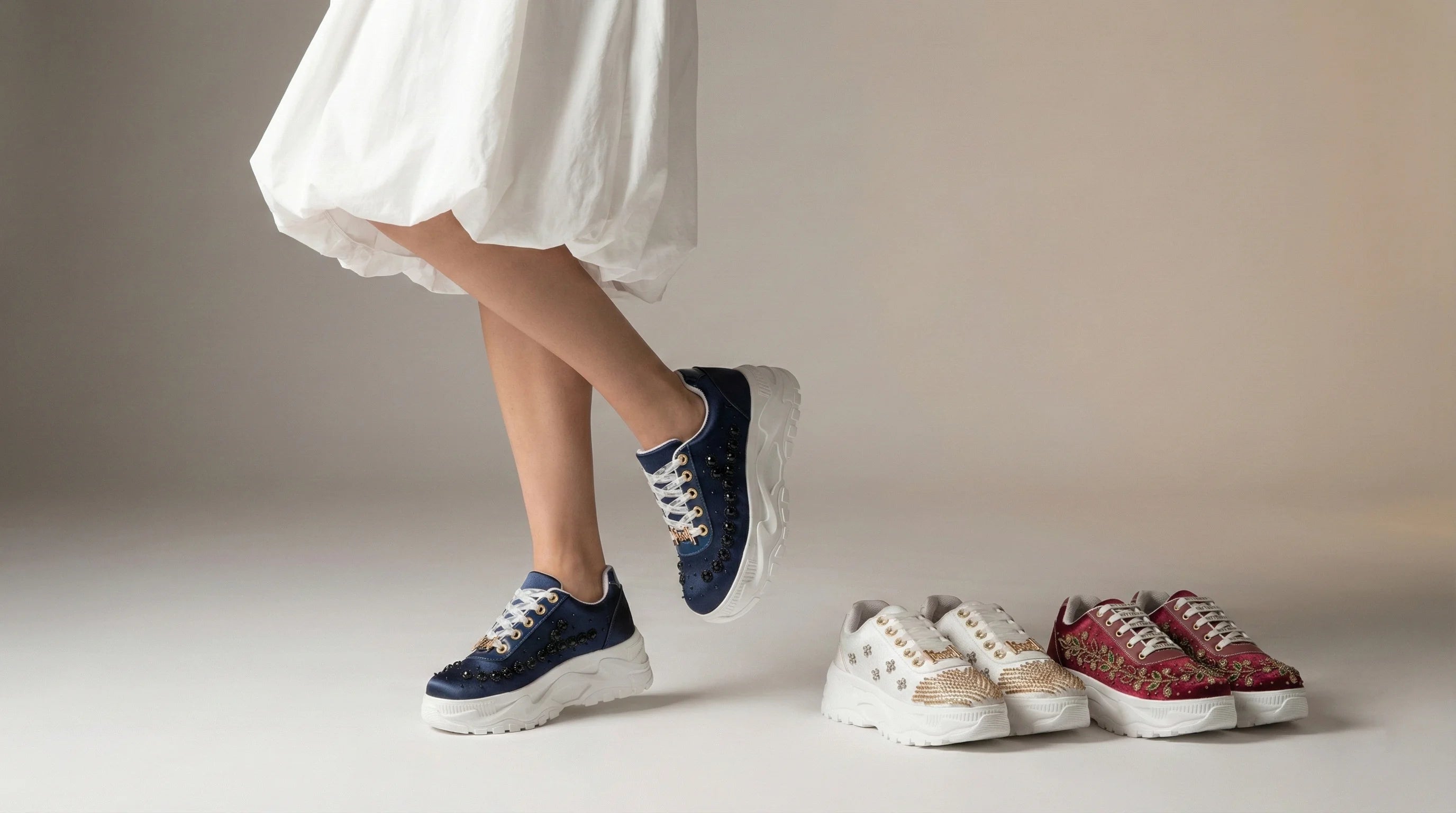 Yes! Sneakers pair surprisingly well with sarees, kurtas, or lehengas and add a fun, comfortable twist. Choose plain or neutral tones to balance the look.