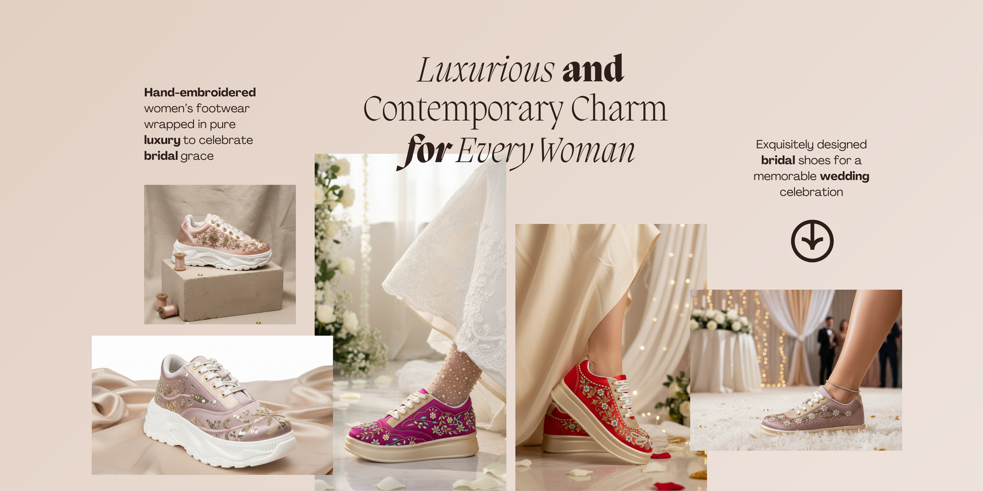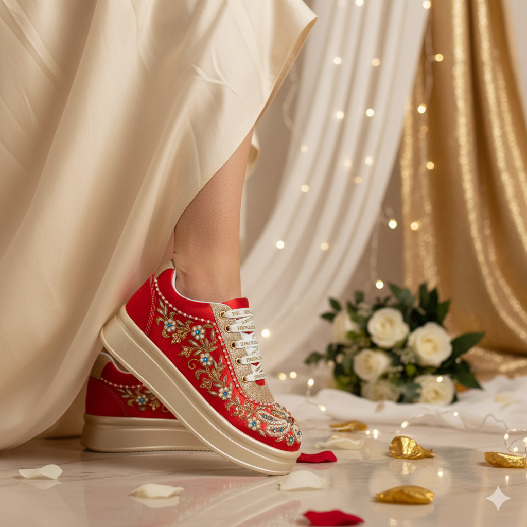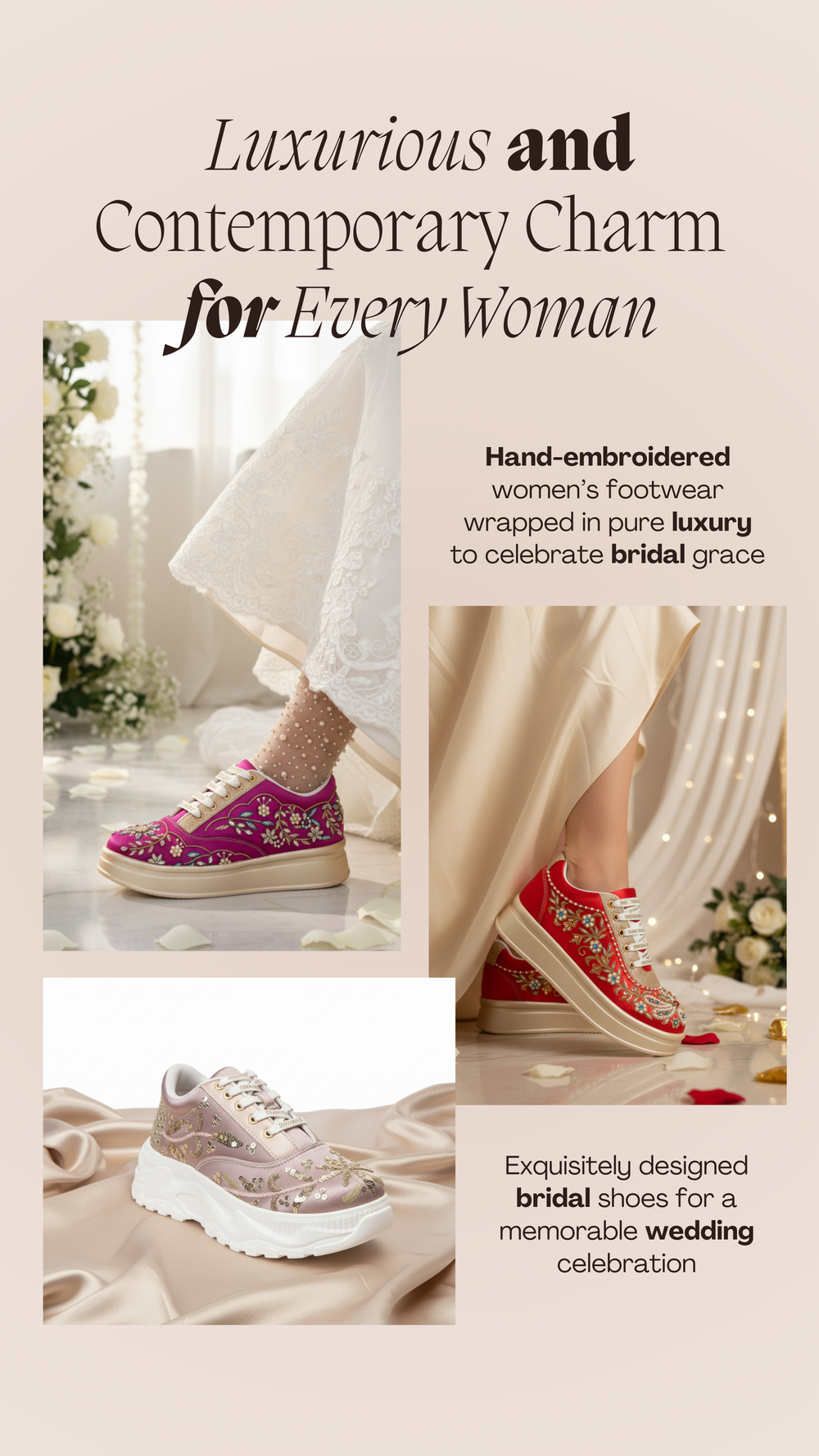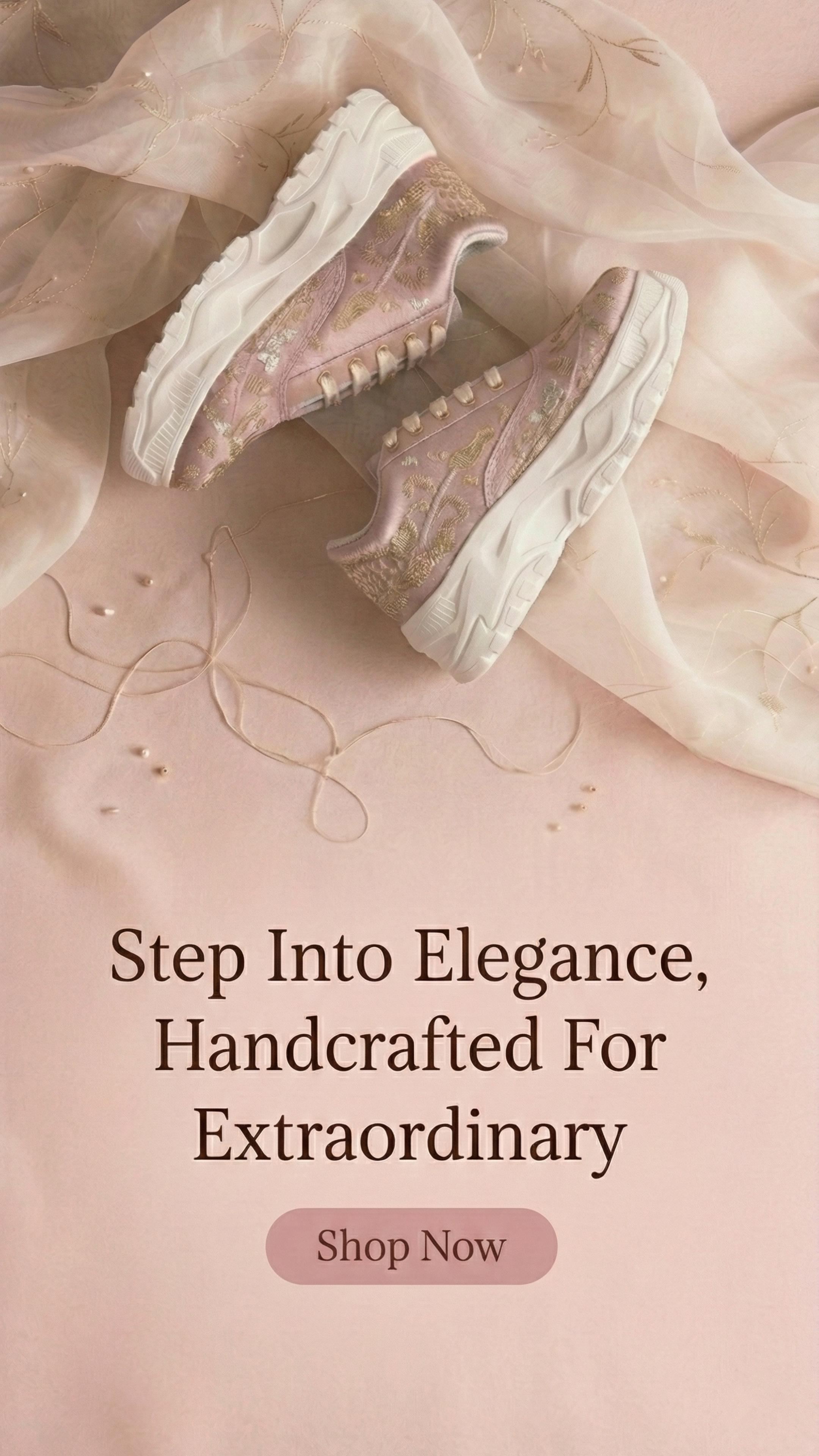 Our hand-embroidered shoes started life in the hands of a craftsman, one who does not merely create, but narrates through seams. Here, each pair of shoes is not just footwear—it is a work of art. The adornments—small mirrors, sparkling sequins, crystals cut by hand, or thread stitched with precision—do not occur by chance. Each one stands for something: happiness, strength, heritage. One shoe may shine with floral motifs inspired by spring fields in bloom, another reflects the symmetry of ancient structures.
